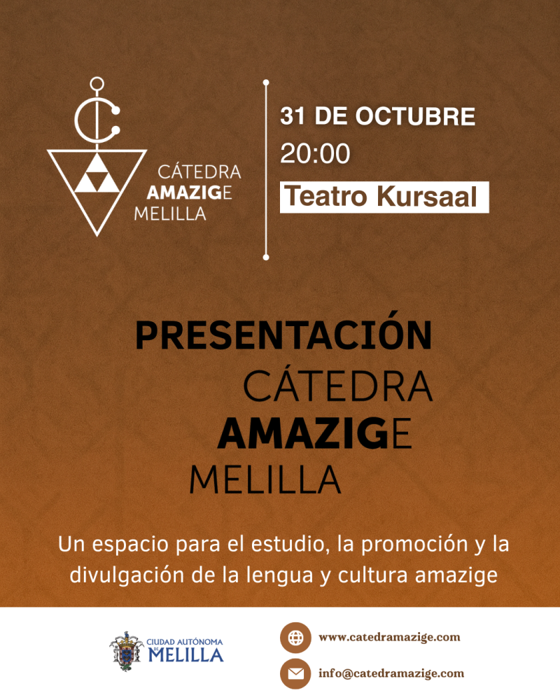 El Teatro Kursaal-Fernando Arrabal acogerá el próximo 31 de octubre a las 20:00 la presentación oficial de la Cátedra Amazige de Melilla, una institución de nueva creación que nace con el objetivo de investigar, difundir y poner en valor la lengua y la cultura amazige como parte fundamental de la identidad melillense. El evento reunirá a representantes institucionales, académicos y ciudadanía.