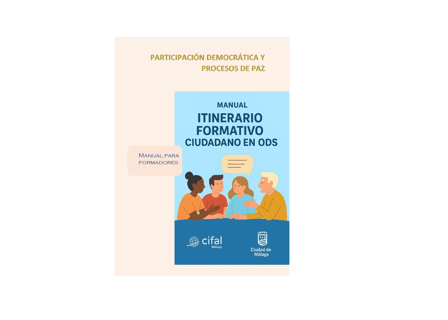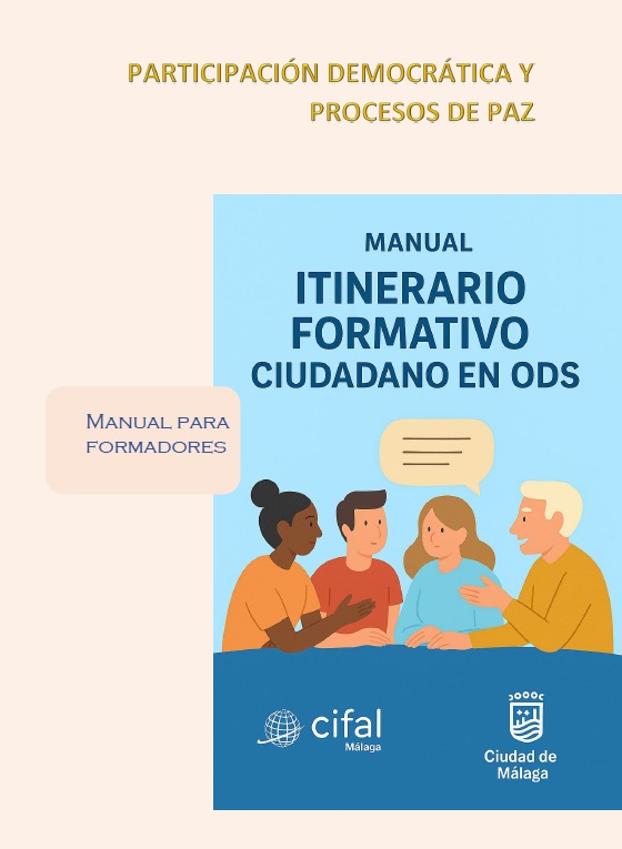 Este manual recoge la experiencia formativa desarrollada por CIFAL Málaga y el Ayuntamiento de Málaga en el marco del ciclo de seminarios “Participación Democrática y Procesos de Paz”, dirigido a estudiantes de bachillerato y universitarios de centros educativos de la ciudad. Su propósito es ofrecer una guía práctica y accesible para que docentes, educadores y otros agentes formativos —tanto del ámbito público como del privado— puedan replicar y adaptar los contenidos, metodologías y actividades en contextos educativos diversos.