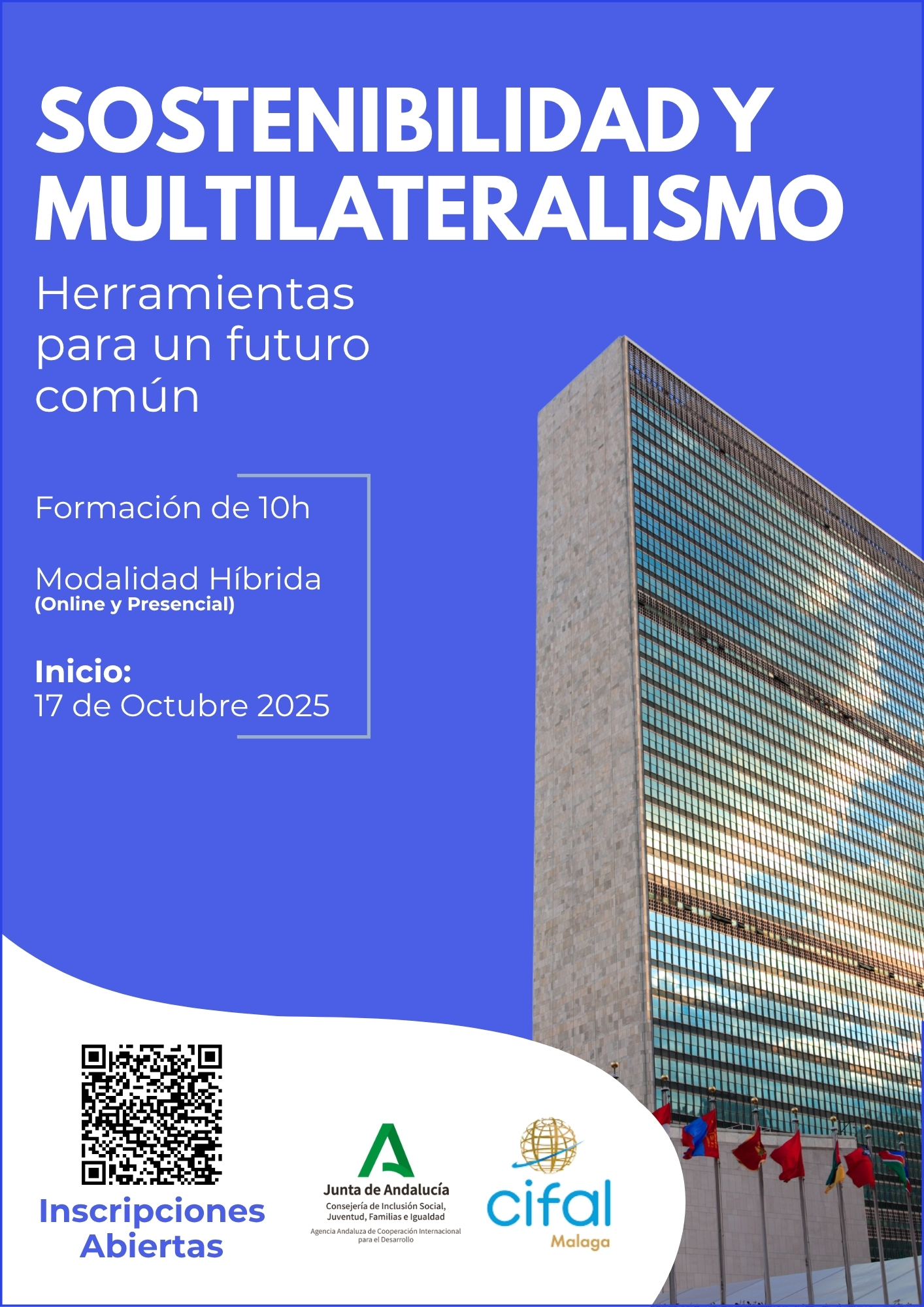 CIFAL Málaga pone en marcha en su aula virtual el curso “Sostenibilidad y Multilateralismo: herramientas para un futuro común”, una iniciativa formativa que ofrece una visión aplicada sobre el papel del multilateralismo en la Agenda 2030 para el Desarrollo Sostenible. Esta acción formativa está financiada por la Agencia Andaluza de Cooperación para el Desarrollo (AACID).